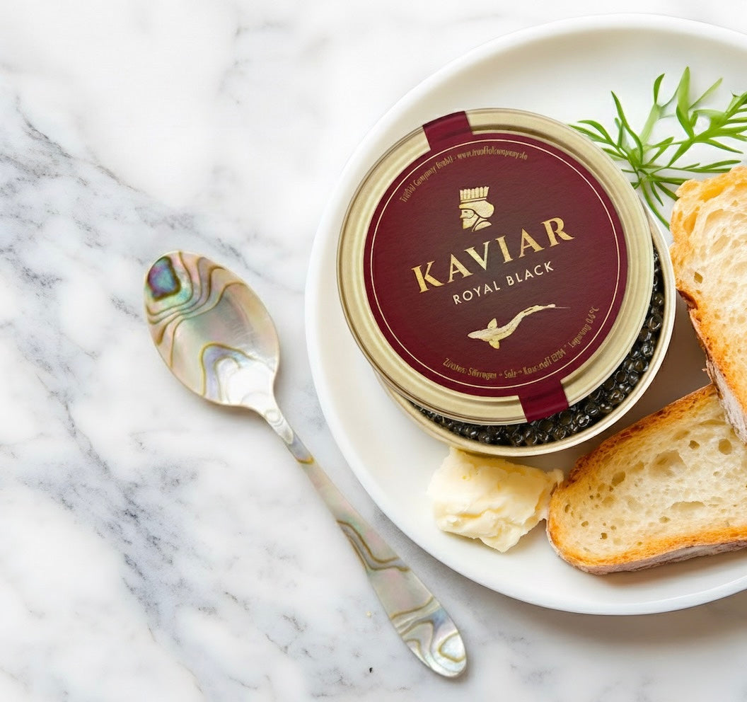 Mit seiner zarten Textur und edlen Cremigkeit ist Royal Black nicht nur ein Favorit in der gehobenen Gastronomie, sondern auch ein authentisches Erlebnis für alle, die Kaviar in seiner intensivsten Form erleben möchten. Korn mit einem Durchmesser von ca.1,5 mm.